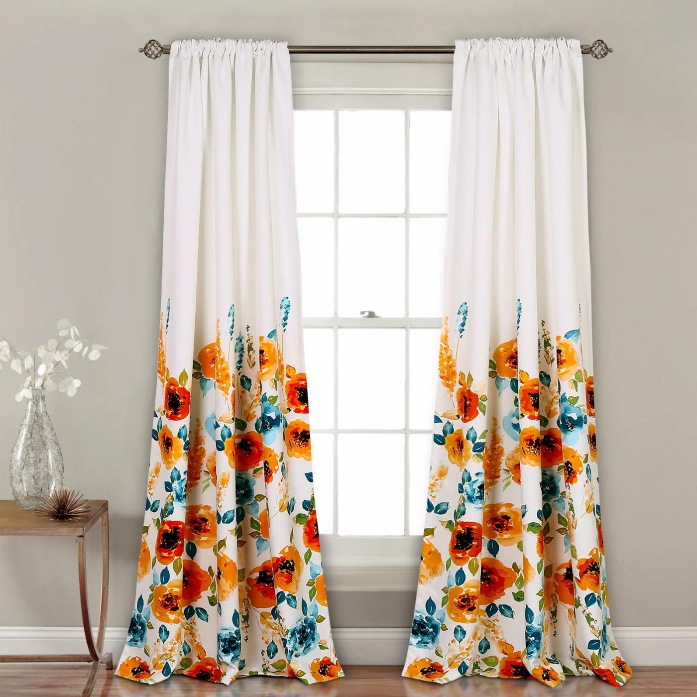 A lovely floral pattern makes the Lush Decor Percy Bloom Room Darkening Curtain Panel Pair the polishing touch to your room. These two curtain panels are made of machine-washable polyester for easy care and to filter out light.