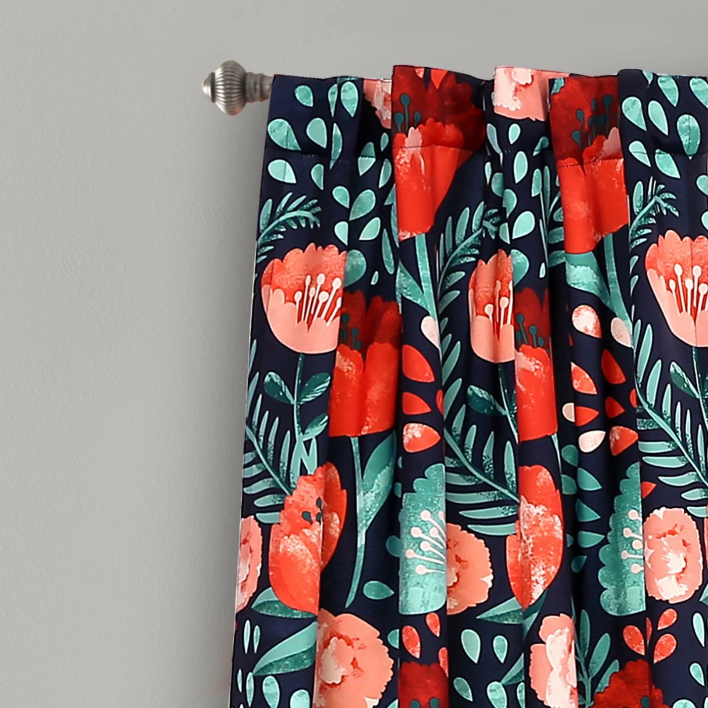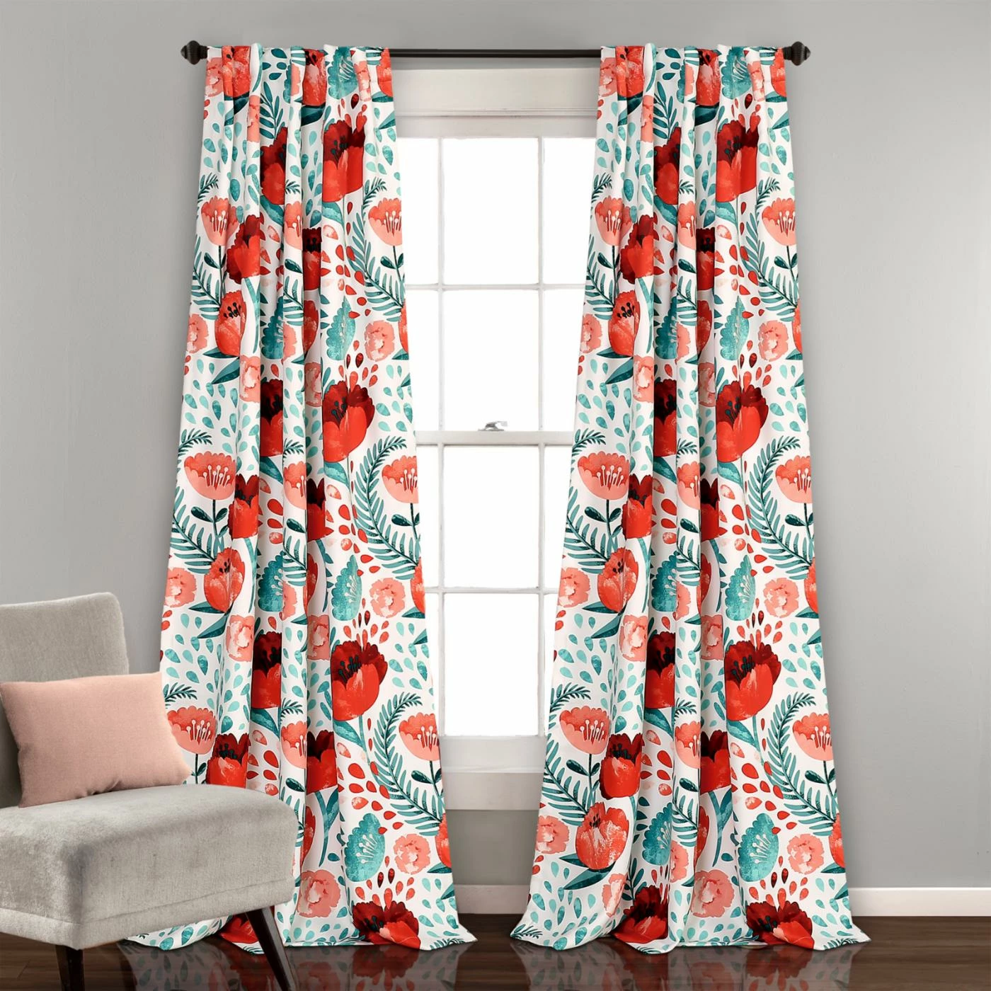 The Lush Decor Poppy Garden Room Darkening Curtain Panel Pair features a large floral pattern in your choice of available bold colors. These curtains are made of polyester and are machine washable.