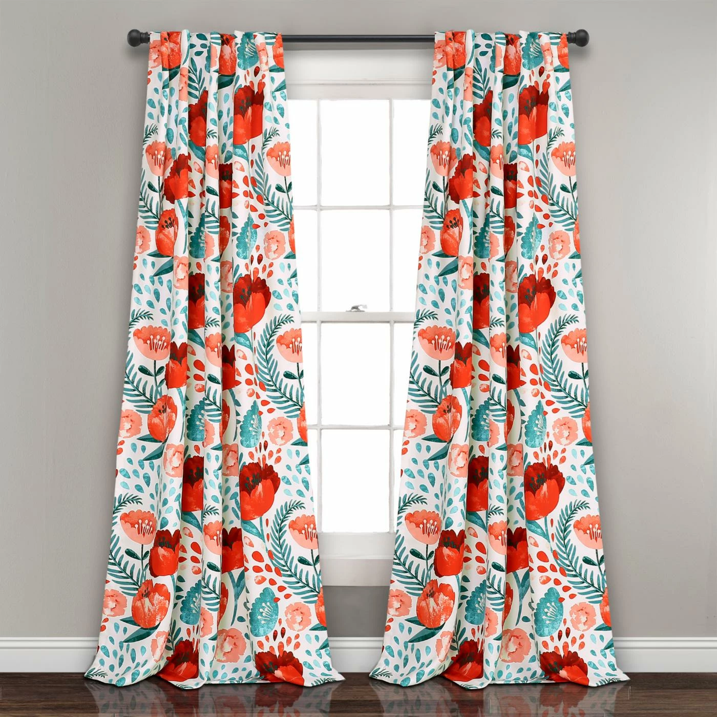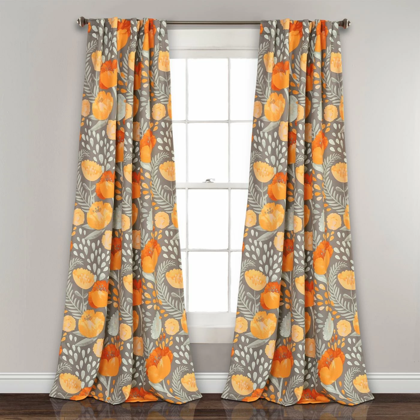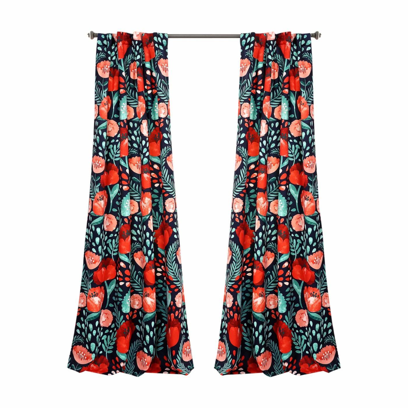 Brighten any space in your home with the Lush Decor Poppy Garden Room Darkening Panel Pairs, which features a summery floral print. These curtain panels are made of easy-care polyester, and they will darken the room when closed. For easy care, machine wash these curtains as needed.