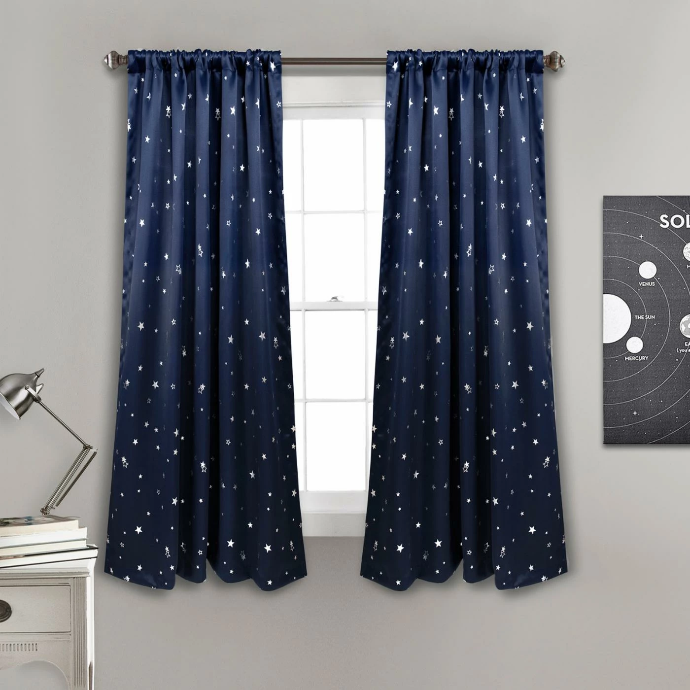 Beautiful with a touch of whimsy, the Lush Decor Star Blackout Panel Pair is a lovely addition to any room. Available in color options and featuring a delicate star pattern, these blackout panels block out light which leads to better temperature regulation and saves energy. Machine washable, youโll love the beauty and practicality of these curtains.