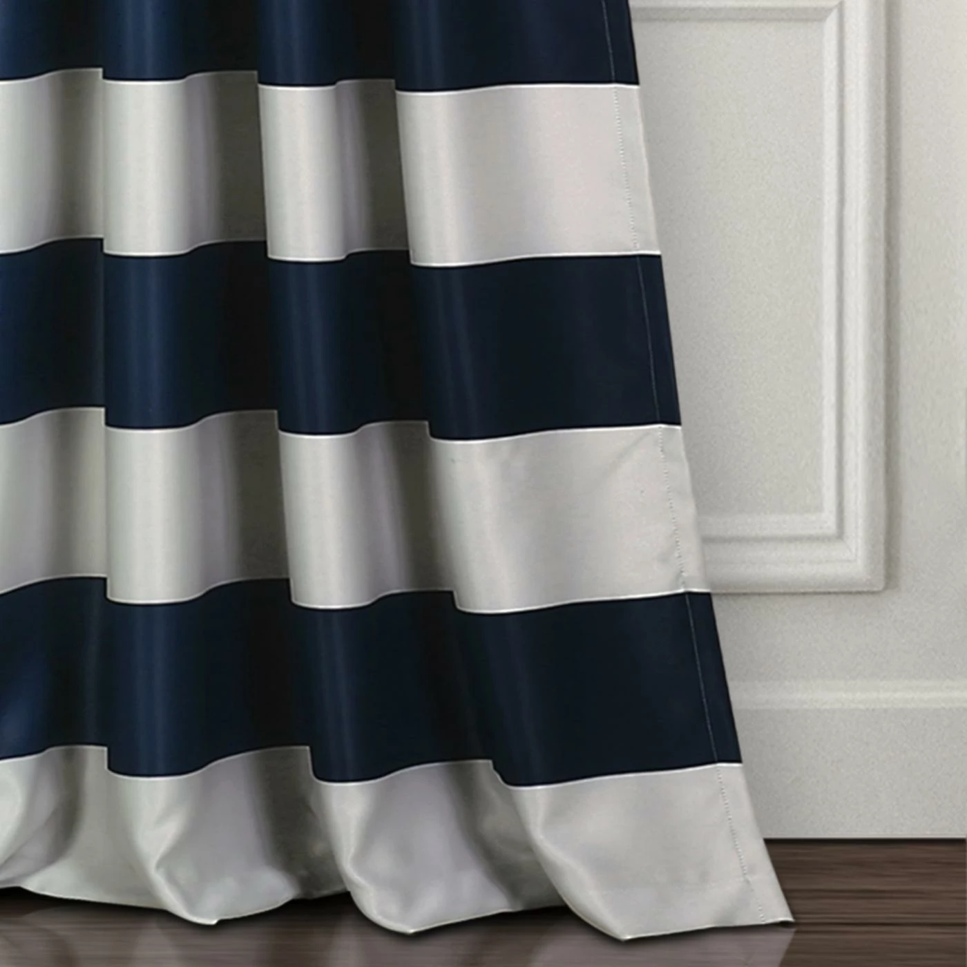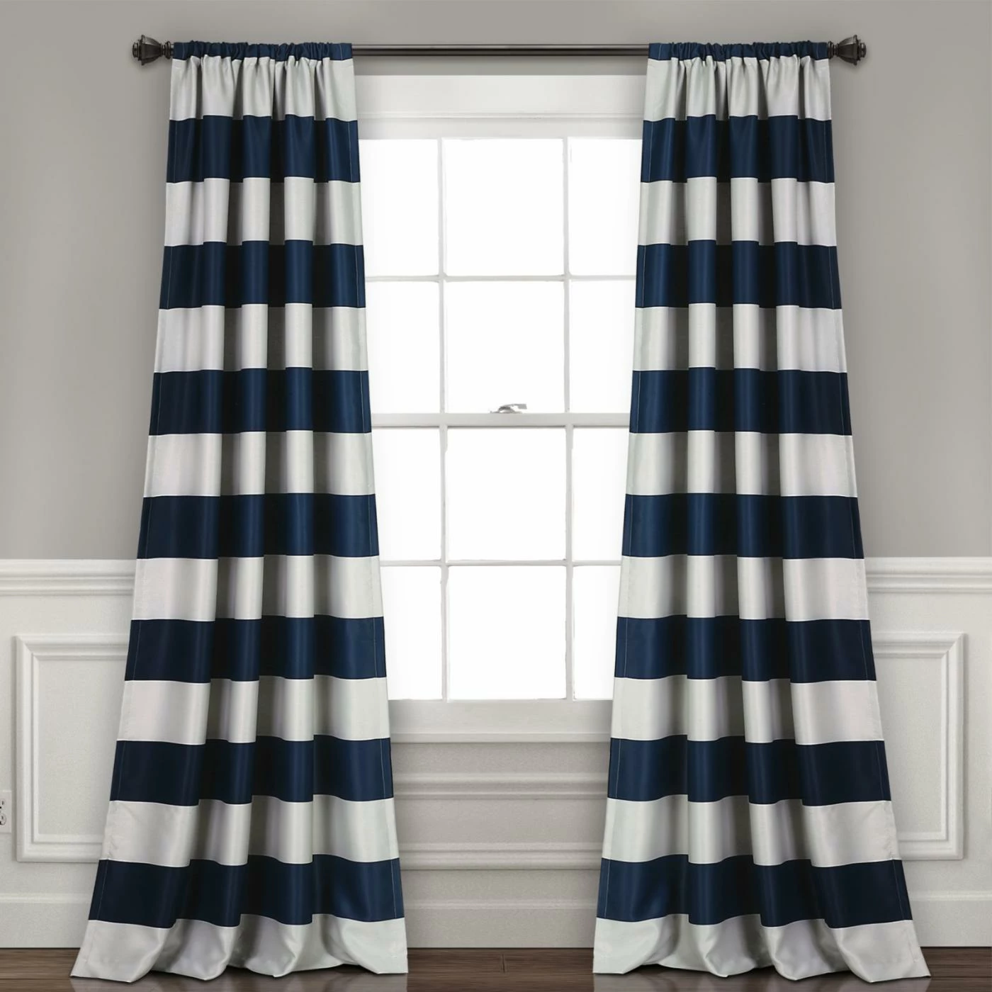 Add the Lush Decor Stripe Blackout Panel Pair to any room to instantly refresh your space. This set of two room-darkening panels features a three-inch rod pocket opening for easy hanging. Made of 100% polyester, they are also machine washable for easy care. Tumble dry low for best results.