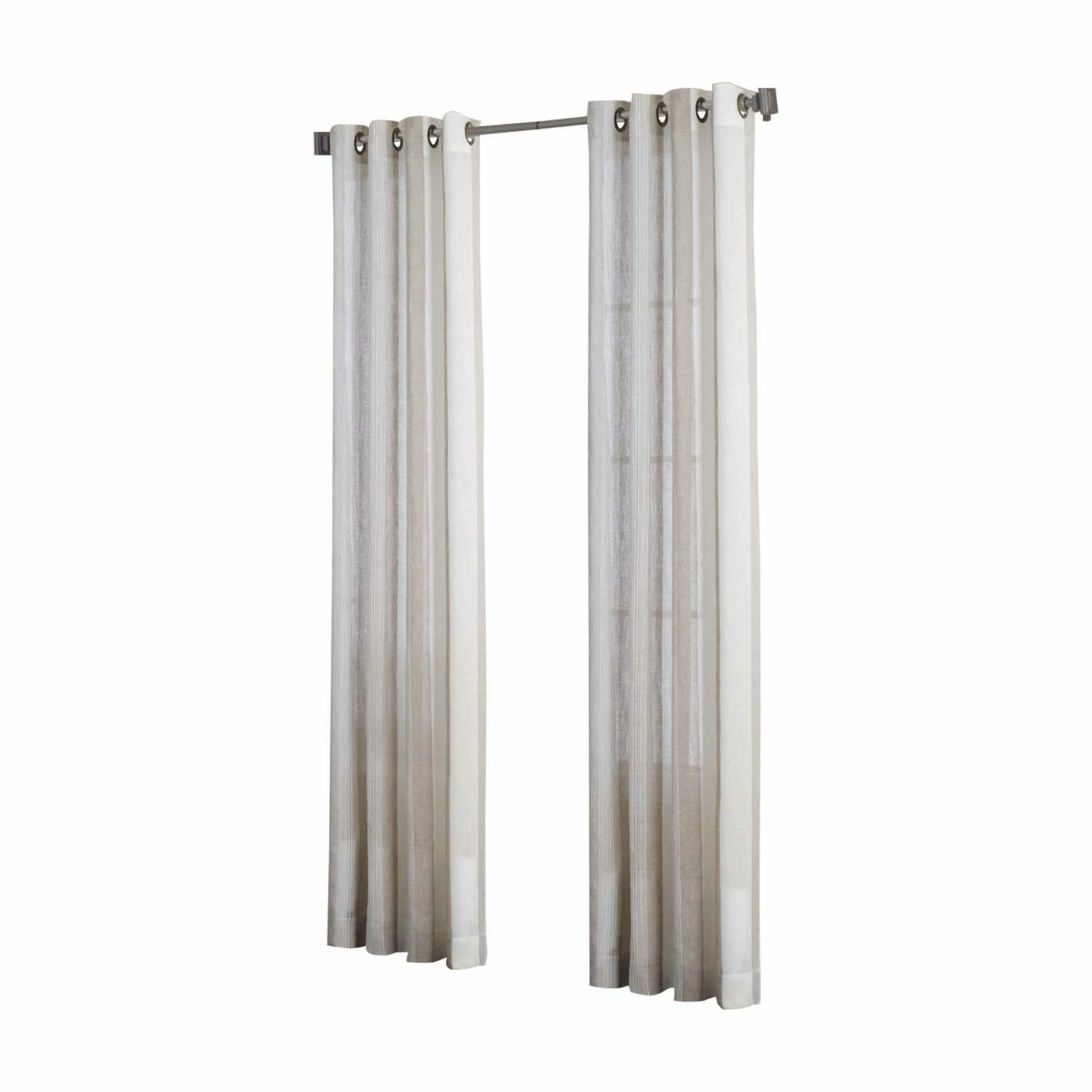 Upgrade the elegance of your sitting room, living room, or bedroom with the Nanshing Grovegat Curtain Panel. This curtain panel is woven from sheer, white polyester with bronzed metal grommets for durable installation. Glittering pale gold vertical stripe help to liven up the look. Choose among the available sizes to match your design needs.