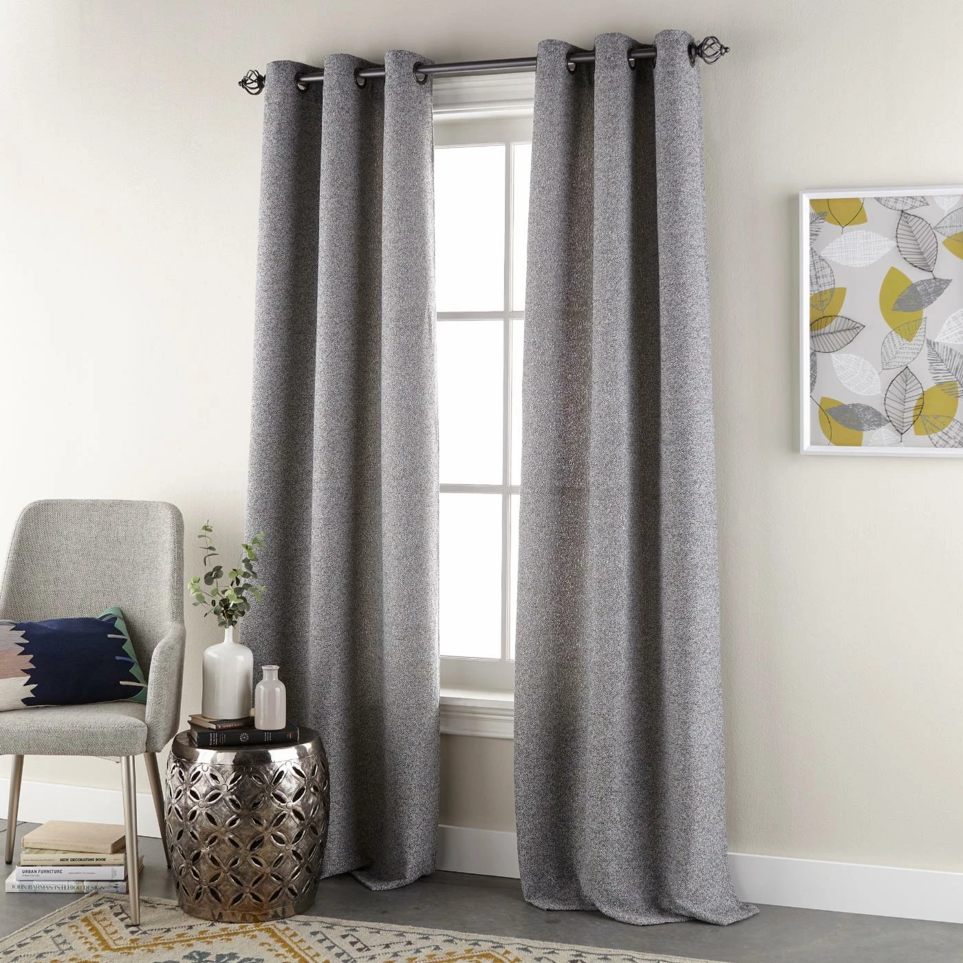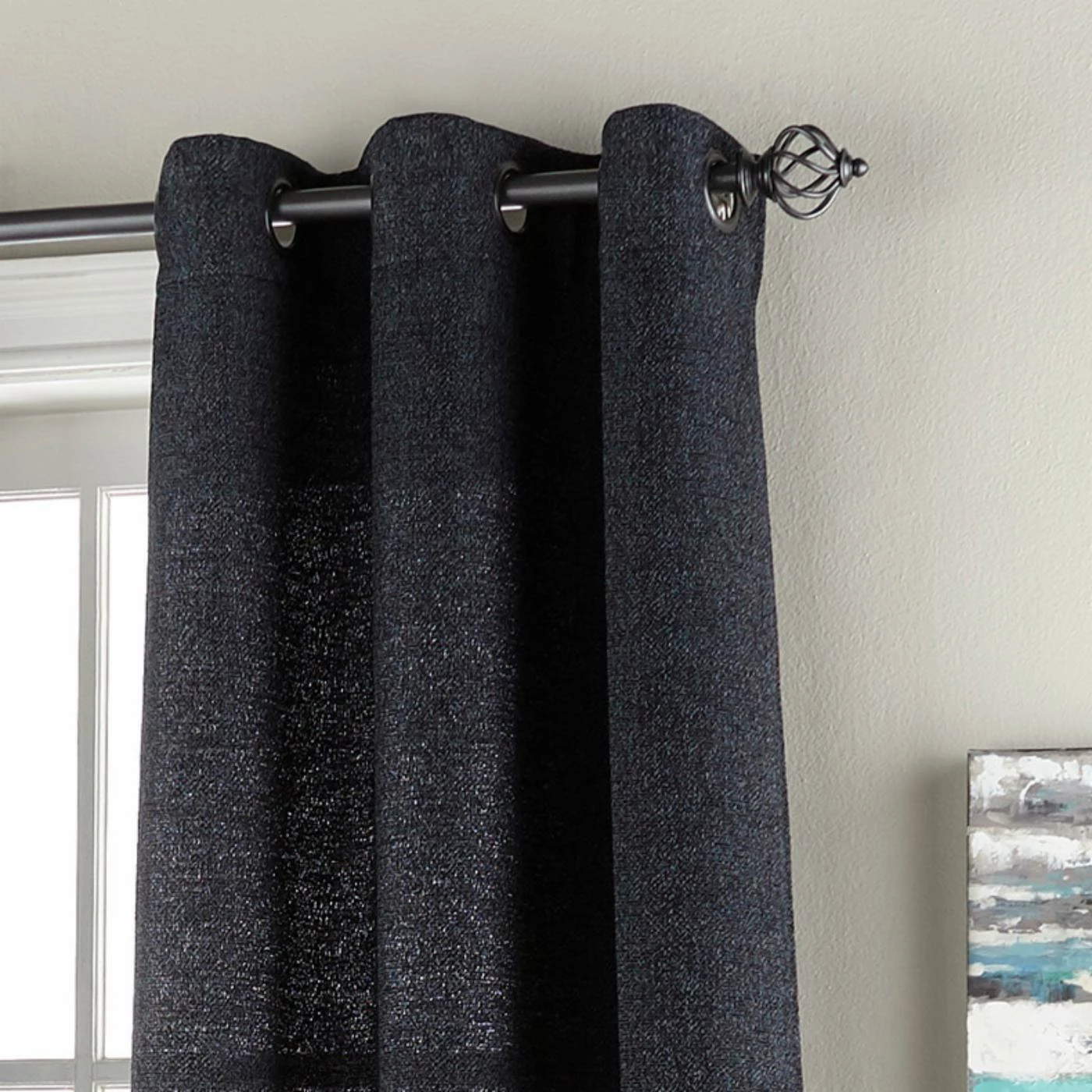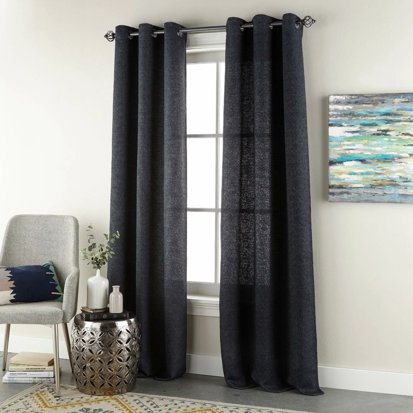 - Solid curtains with metal grommets