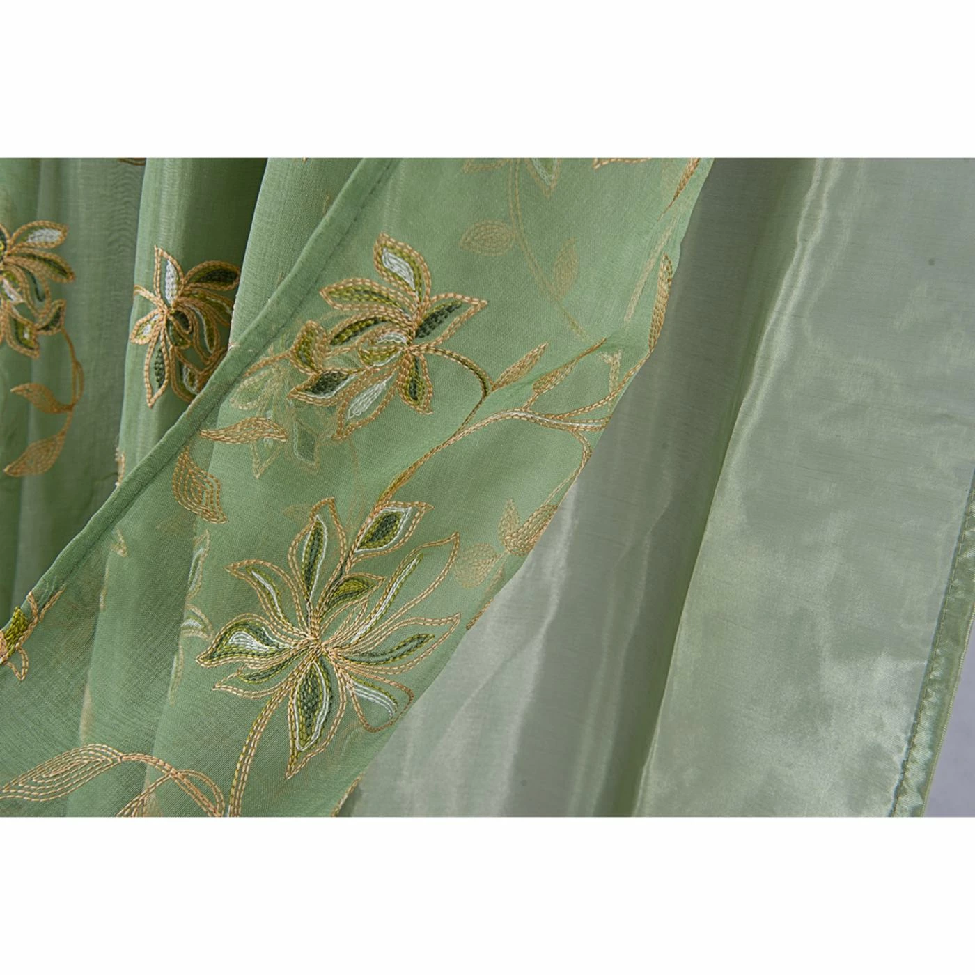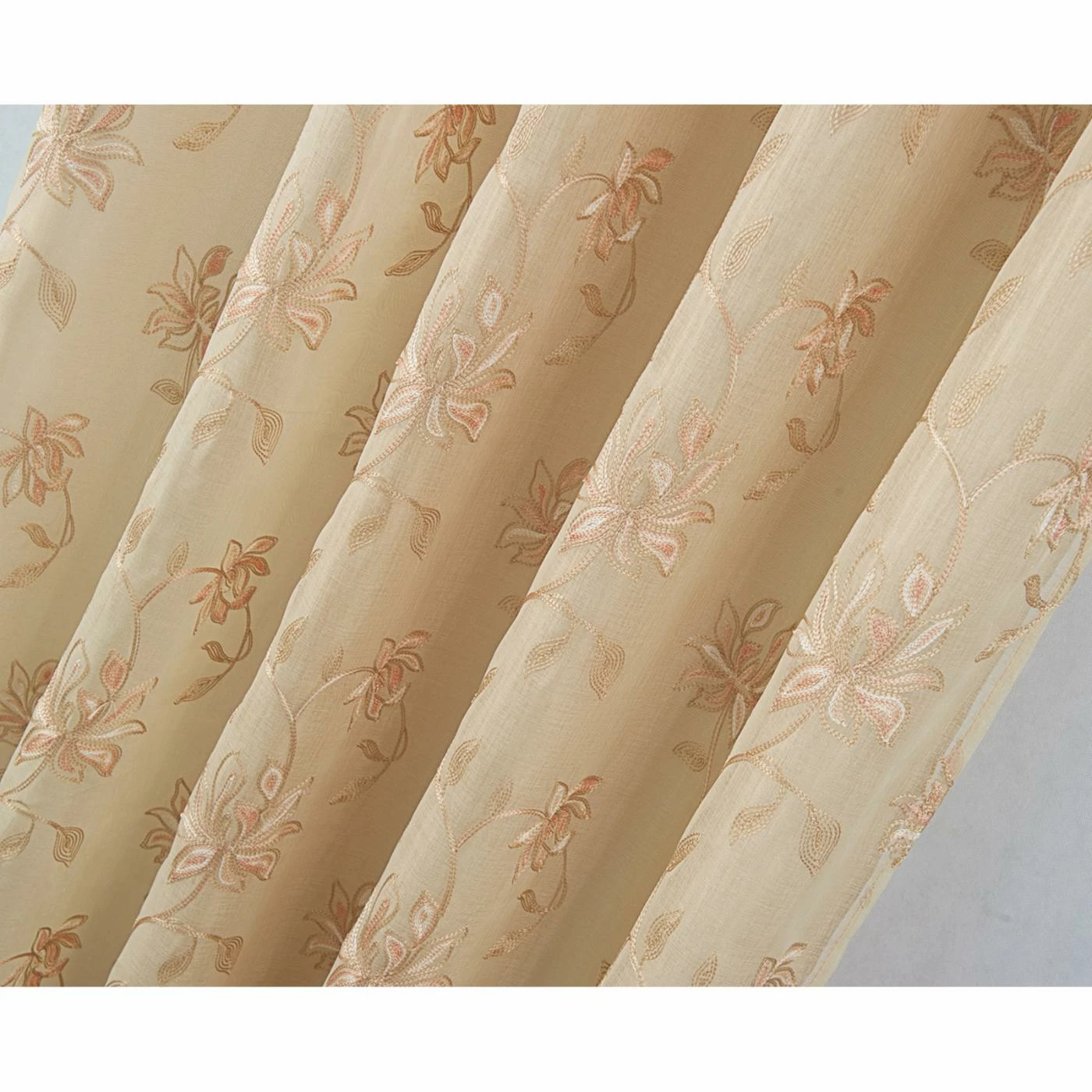 The Olivia Gray Durant Floral Embroidered 84 in. Single Rod Pocket Curtain Panel with Attached Valance is perfect for any room. The beautiful embroidered floral design adds true elegance across this window. A 3-inch rod pocket makes hanging easy. With an attached 18-inch valance and satin backing this will brighten your space with a floral design on a semi-sheer fabric that filters harsh sunlight and creates a soft ambiance. Choice of available colors.