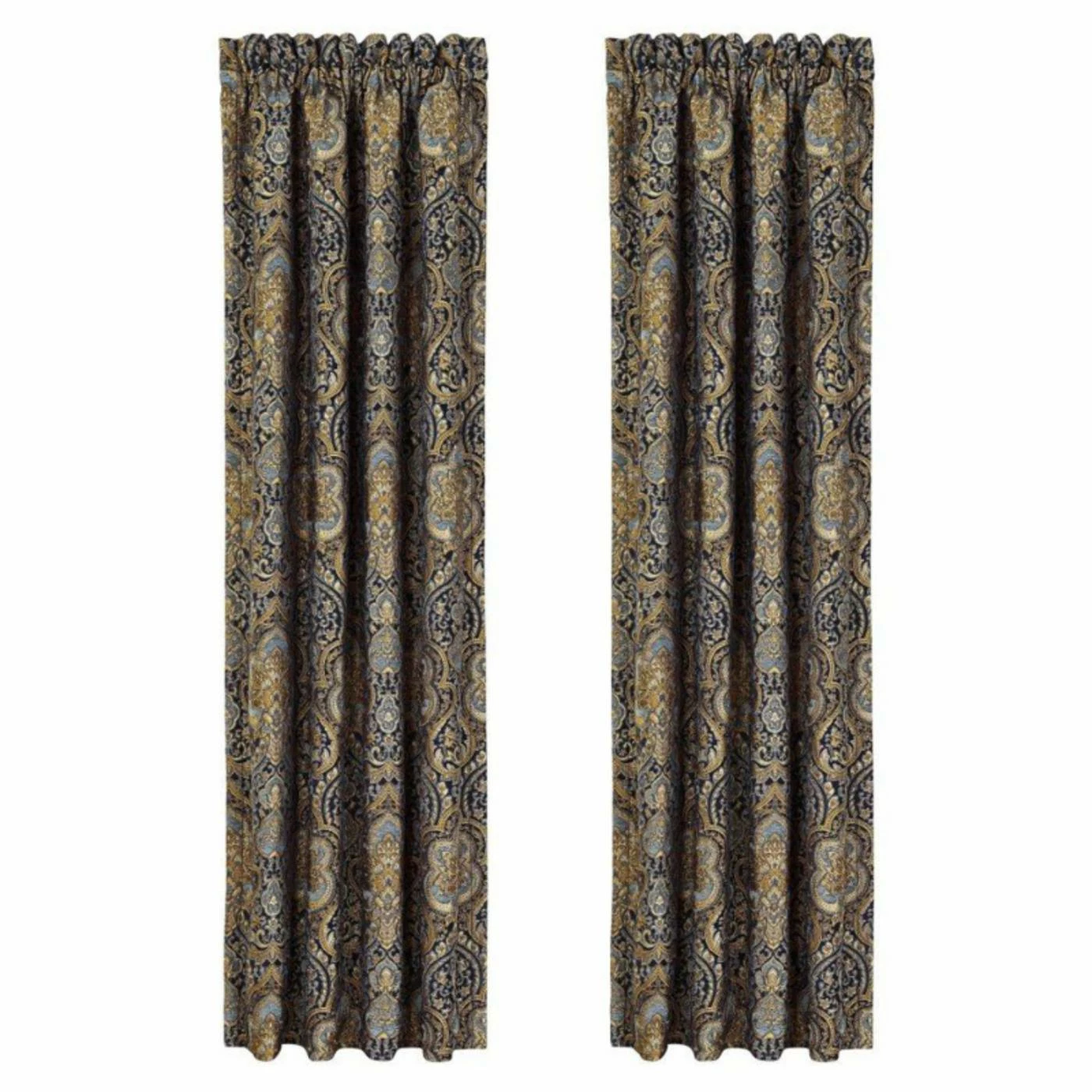 The woven damask pattern on the Palmer Curtain Panel Pair by Five Queens Court lends a luxurious, traditional look to any room. This set includes a pair of curtains made of polyester. The rod pocket along the top lets it slide easily along the curtain rod.