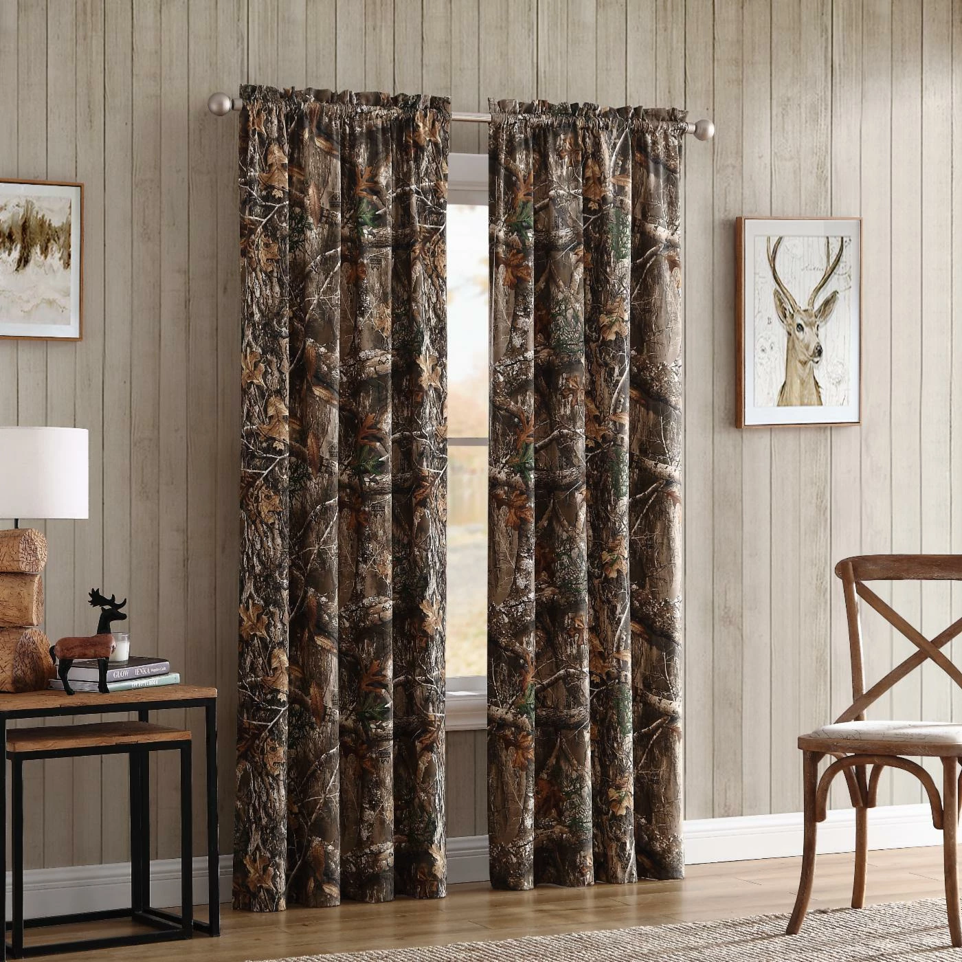 Camouflage your window by decorating it with the Realtree Edge Window Panel Pair. This cotton and polyester panel pair features a rod pocket construction. The camouflage pattern will work well rustic, cabin, or hunting themed rooms. It comes in your choice of available size. Pair this panel pair with the Realtree Edge Window Valance to complete the look. Machine wash these two window panels when needed.