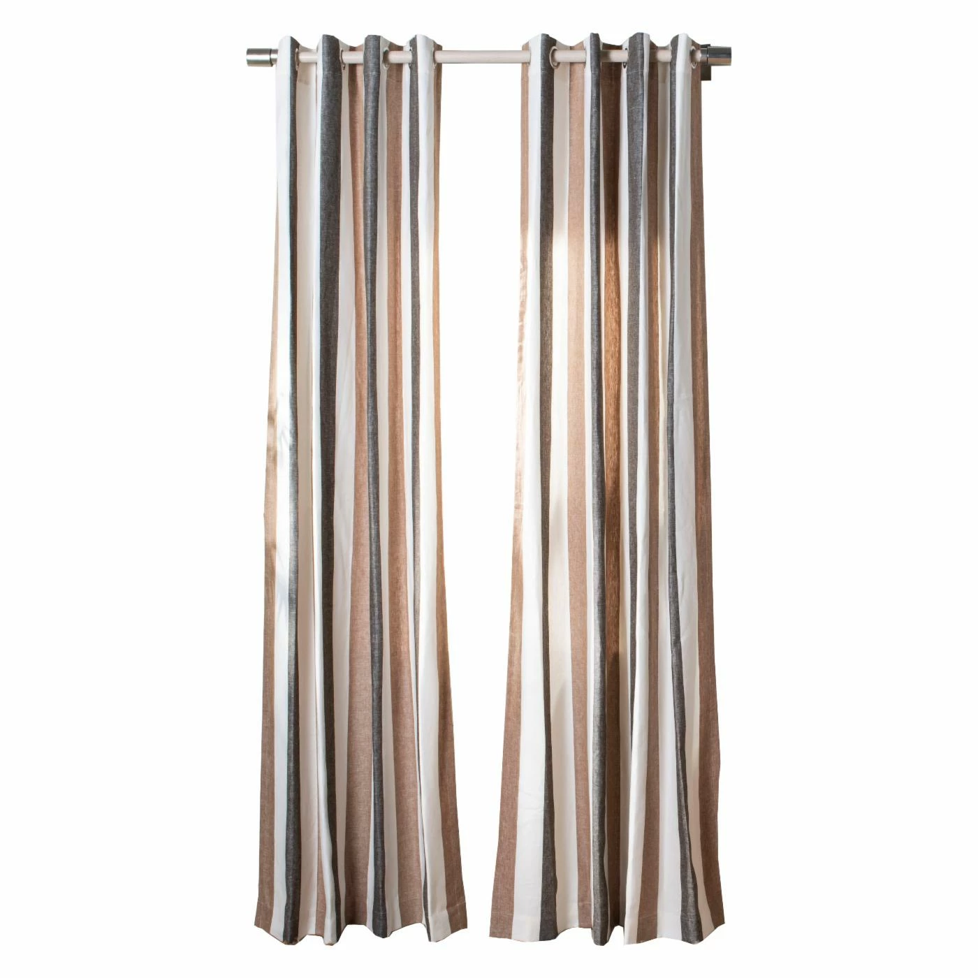 Brown and gray stripes lend the Safavieh Larri Window Panel a playful, laid-back look. This linen curtain panel is simple to machine wash when needed to keep it fresh and clean. Grommets along the top make it simple to slip onto the curtain rod.