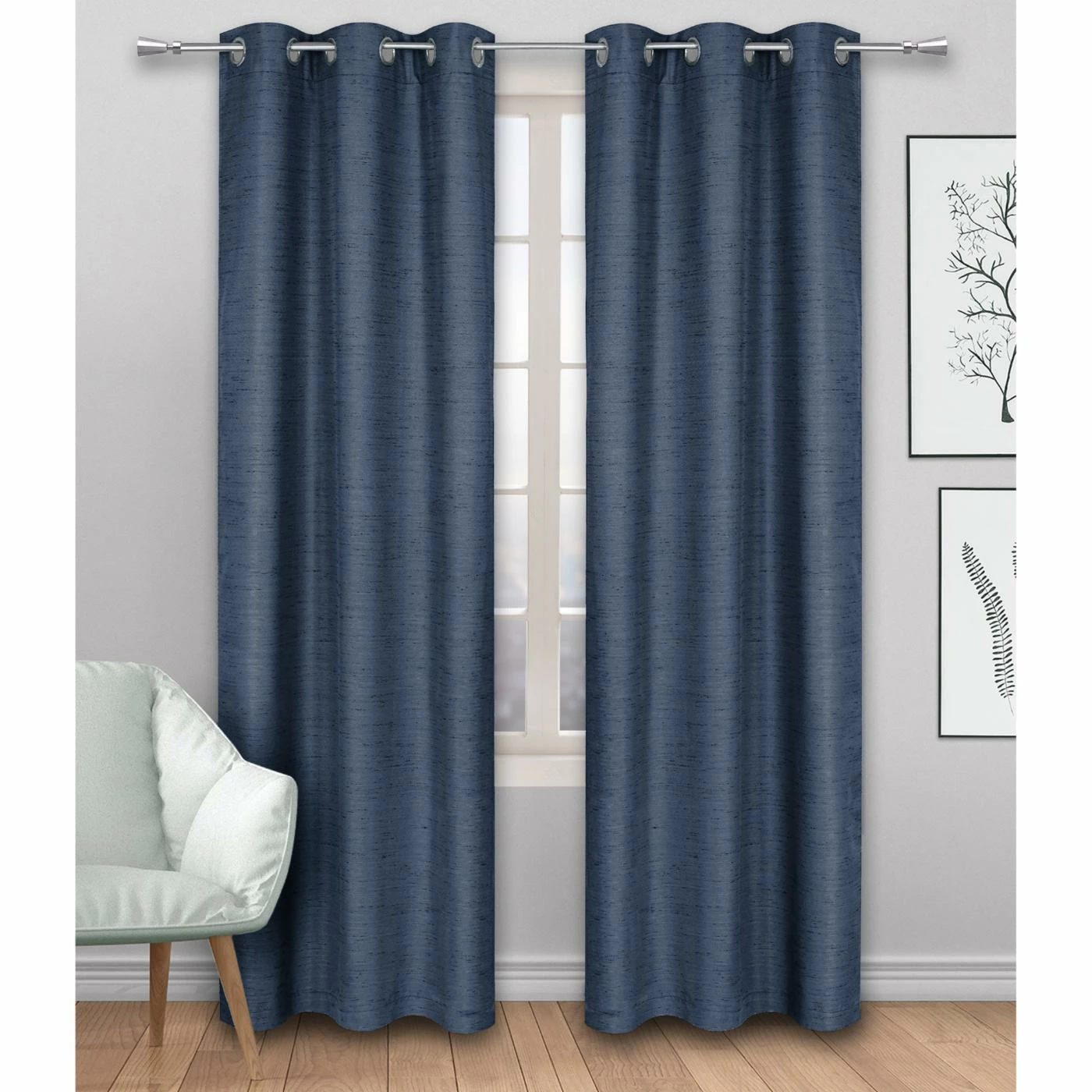Frame your window with the Safdie and Co Linen Look 2 Piece Blackout Curtain Panel Set. This two piece set is made of 100% polyester, making them durable and wrinkle resistant. The surface of each panel has a textured stitching, giving them an airy linen appearance. Metal grommets line the top, making them easy to slide open or shut. When closed, these curtains will blackout any light that tries to seep in. Choose from a selection of colors to best complement your space.