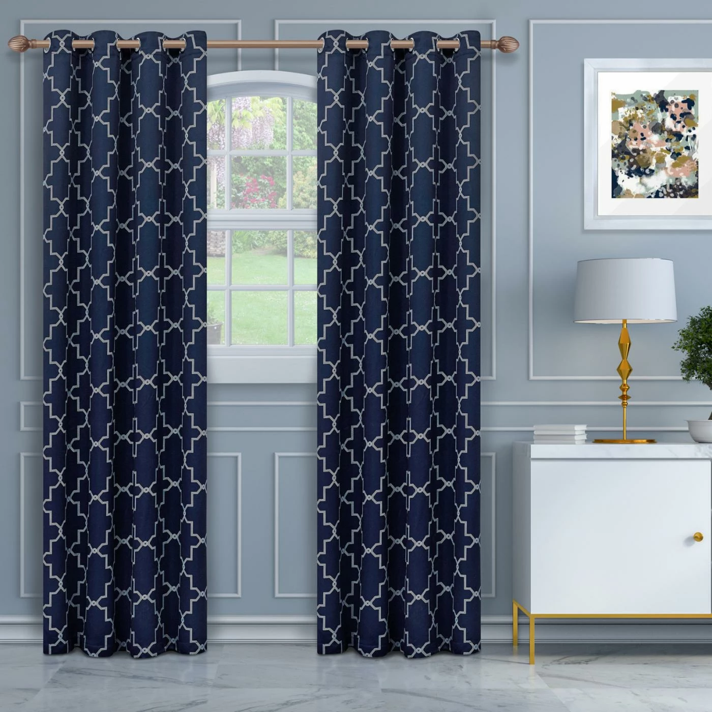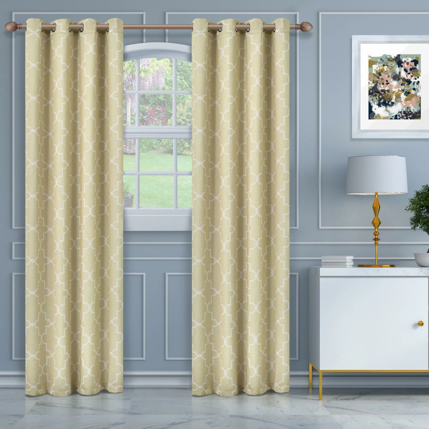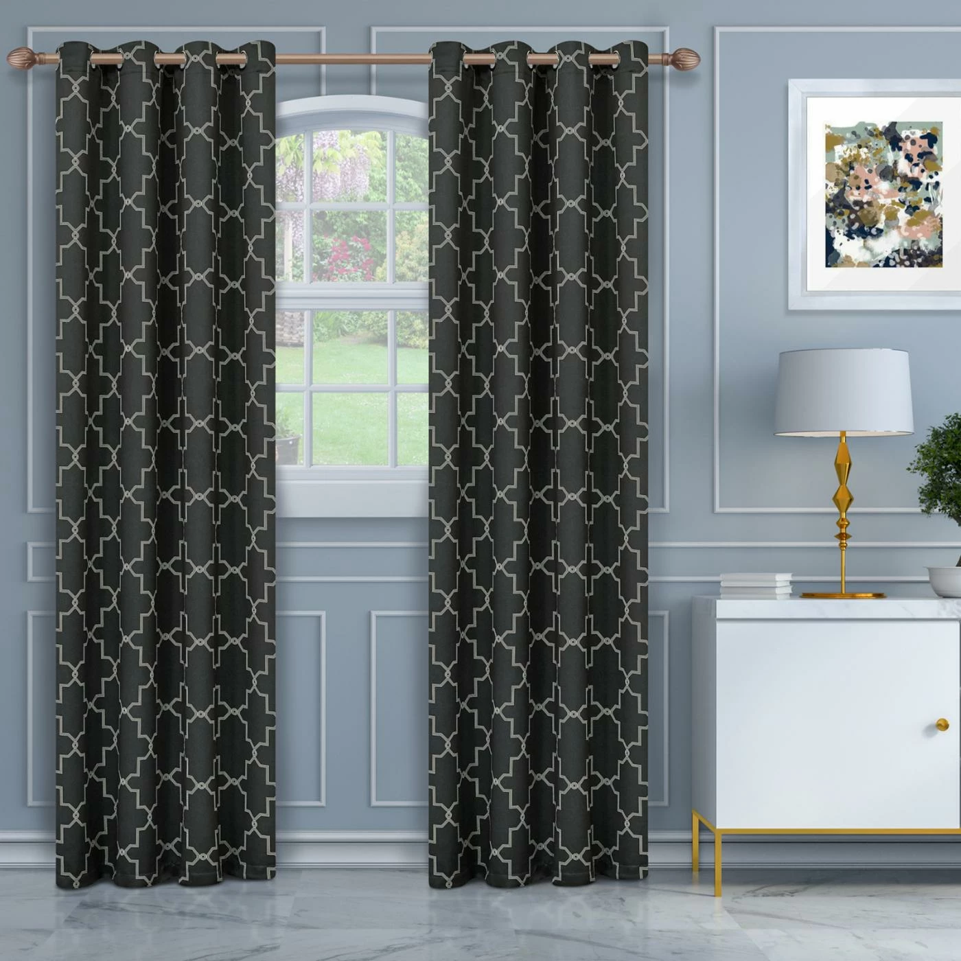 Elevate any room in your home with the sophisticated geometric pattern and durable polyester construction of theΒ Superior Imperial Trellis Blackout 2 Panel Curtains. This set includes two blackout curtain panels that can block up to 75% of the sunβs rays. You can choose from available colors and sizes to get the right look for your home.