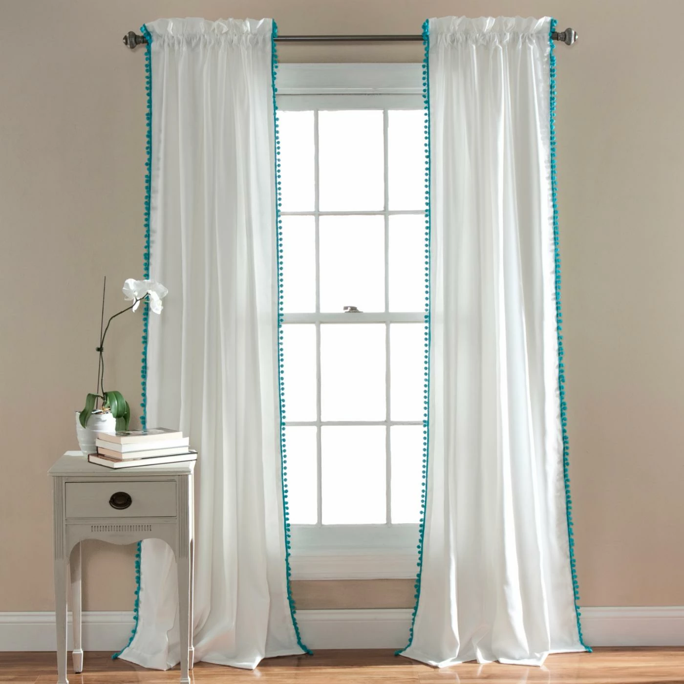 A perfect way to dress your bedroom window, this Triangle Home Fashions Lush Decor Pom Pom Window Curtain Panel is trimmed in mini pom poms and comes in a variety of lush color options. This window curtain panel provides the perfect complement to your boho chic bedroom. It’s made of polyester, has a classic rod pocket design, and should be dry cleaned.