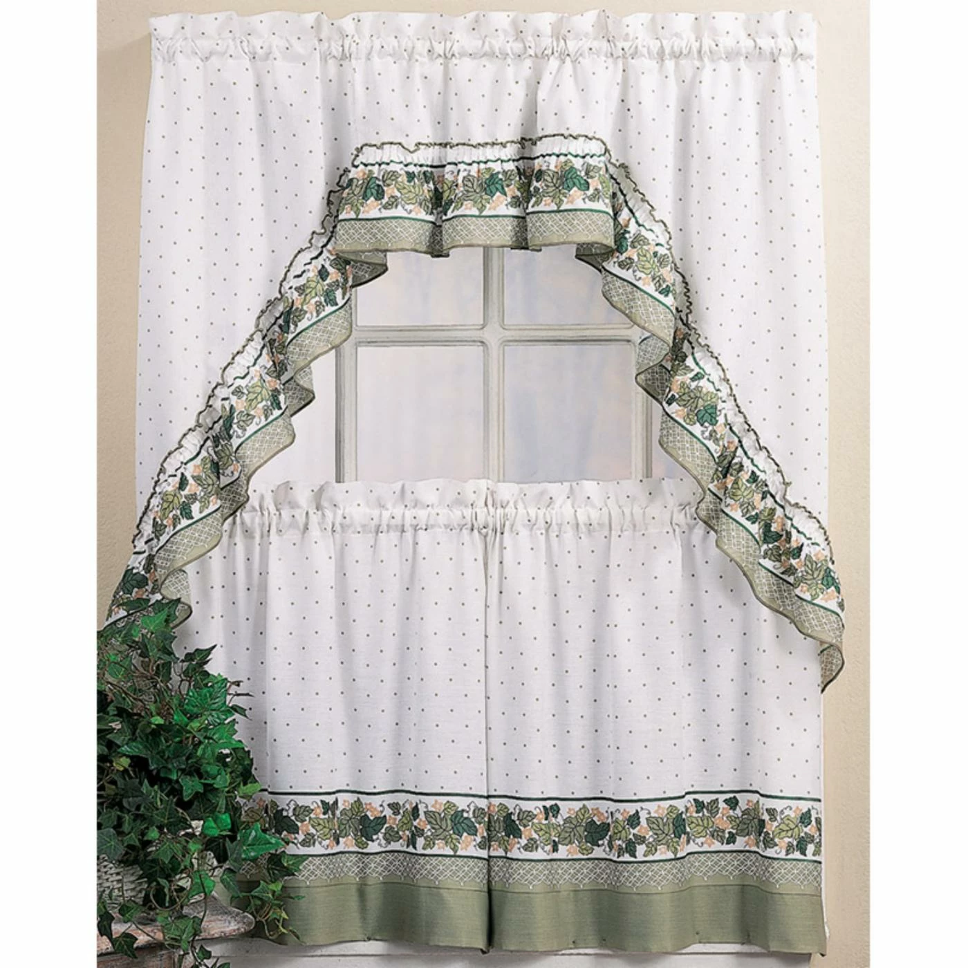 Welcome your kitchen to the ivy leagues with the CHF Industries Cottage Ivy Kitchen Curtain Set. Featuring an ivy motif, this set is crafted of 70 percent polyester and 30 percent cotton, and it’s machine washable for convenience.