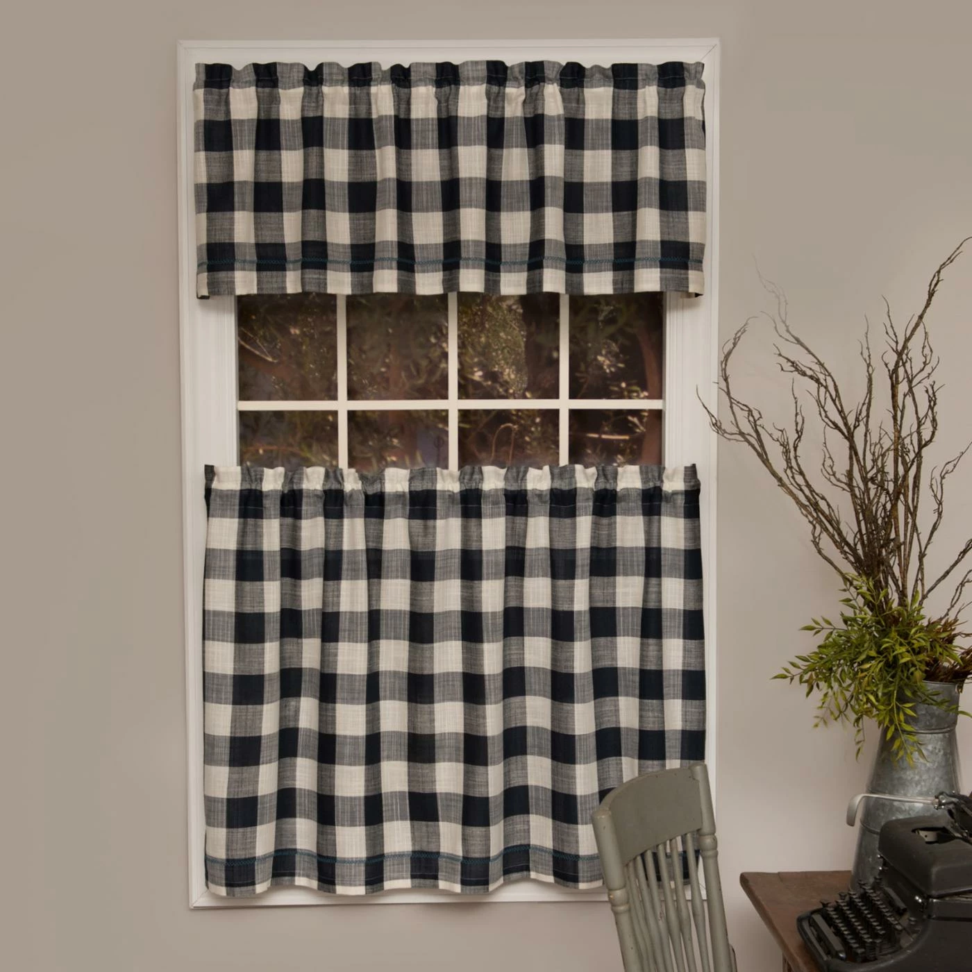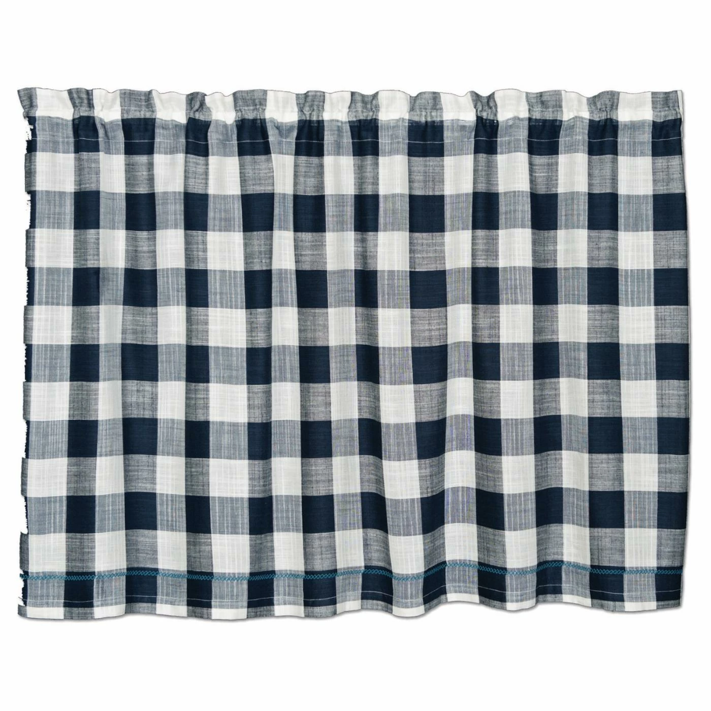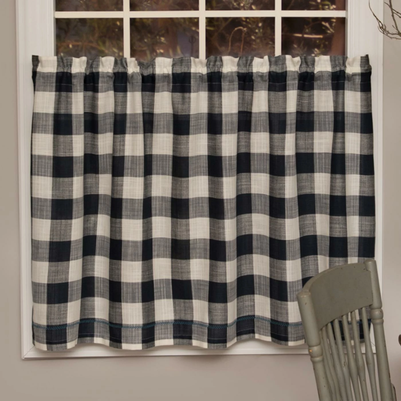 Preppy charm radiates from the blue plaid motif of the Heritage Lace Buffalo Check Curtain Tier. Cotton construction ensures a light and flowy feel whenever a breeze comes through the window. This curtain tier is machine washable with a 1.5-inch rod pocket.