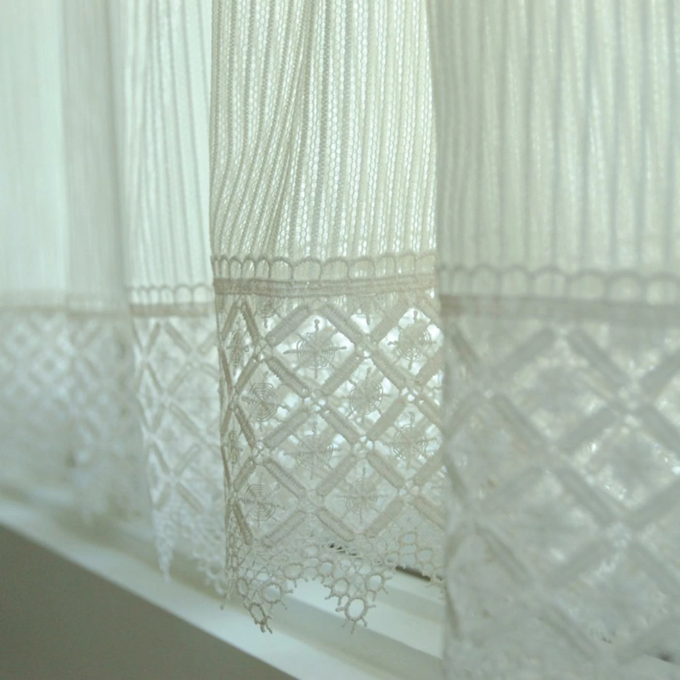Crisp, clean pinstripes give the Heritage Lace Chelsea Tier with Trim its gauzy charm. A wide, yet simple macramรฉ trim makes this tier a glorious addition to any Victorian-inspired room.