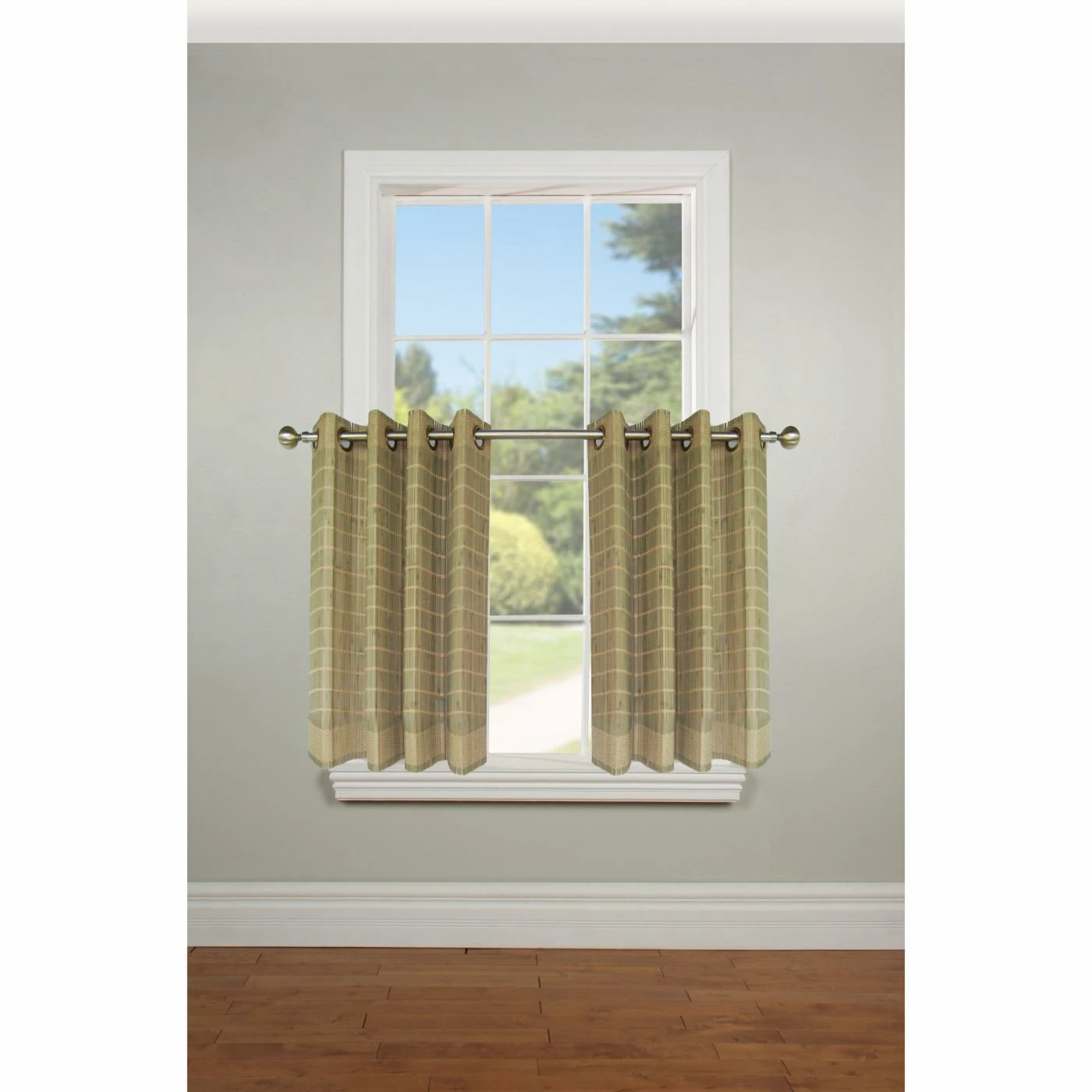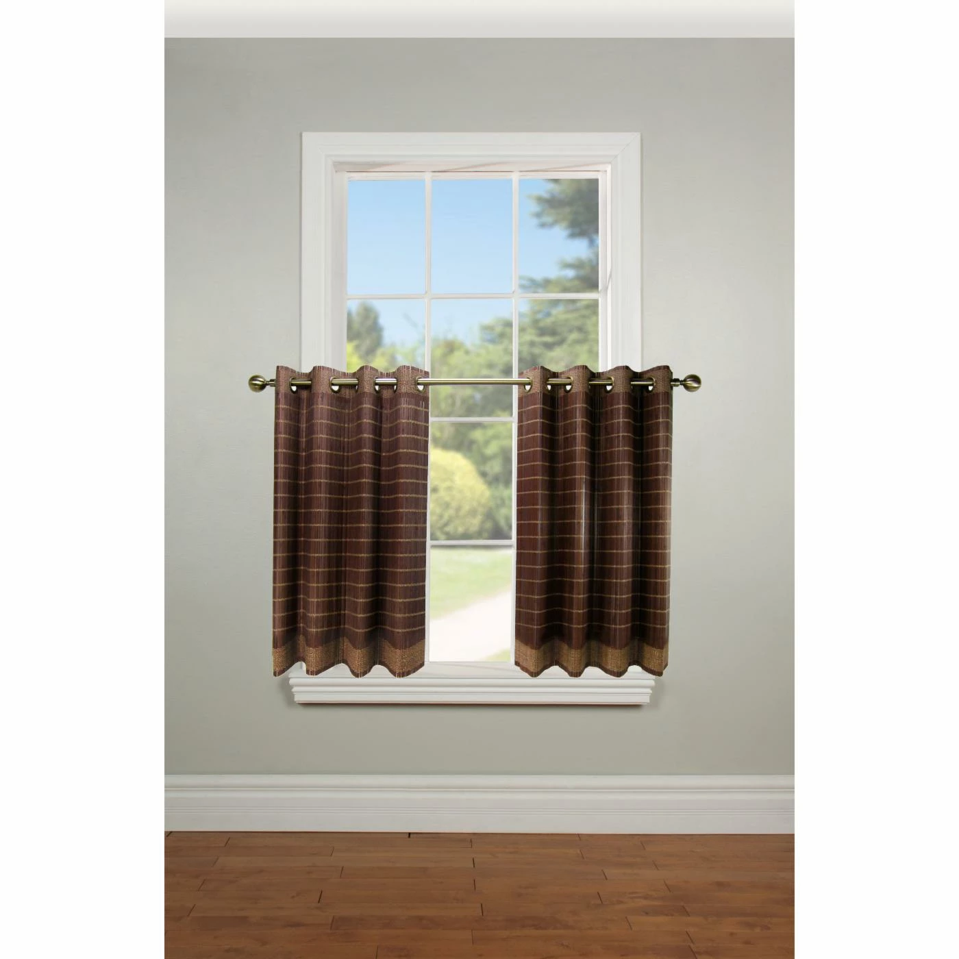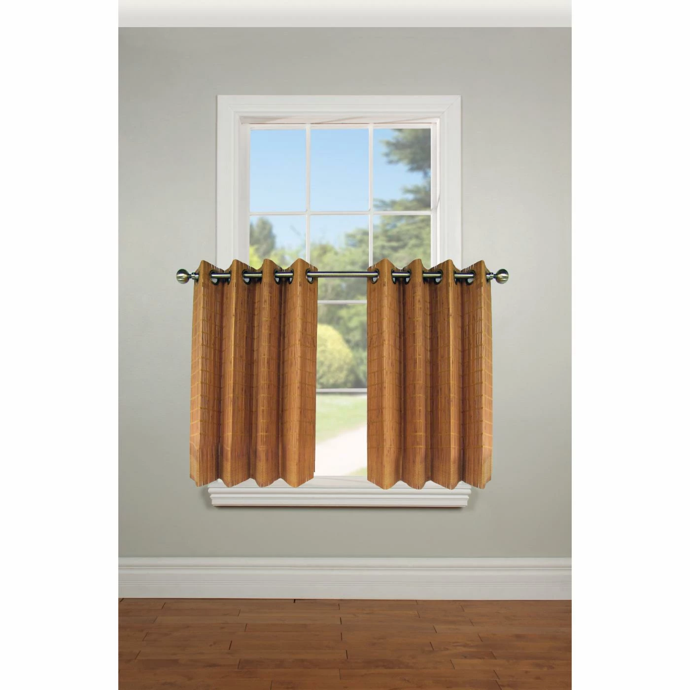 Make an earthy statement with the Versailles Viscose from Bamboo Wood Curtain Tier Set. Made from viscose from bamboo, these curtains offer a unique departure from traditional fabric curtains. Choose from available finishes with a subtle striped pattern. The grommet top allows for easy installation and sliding.