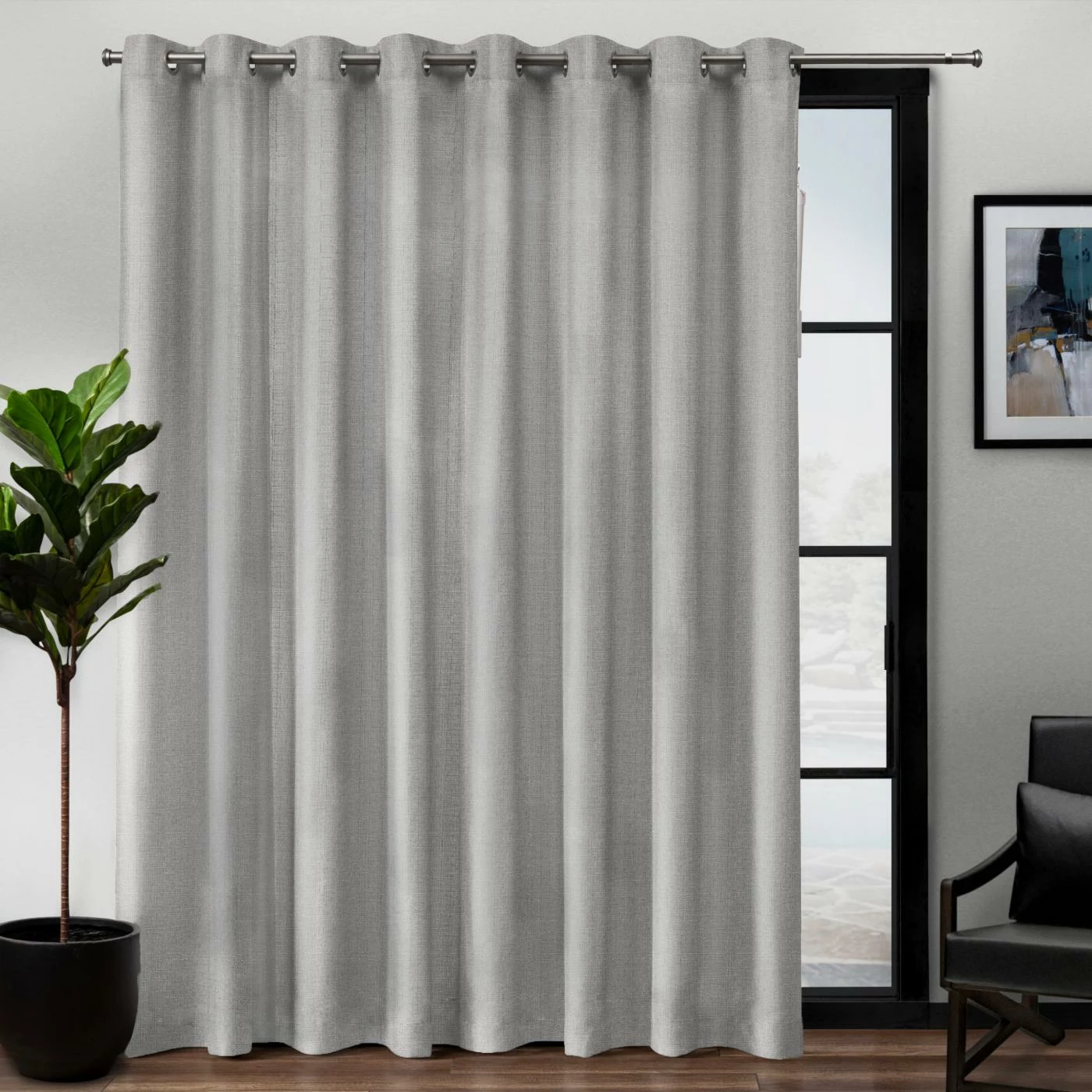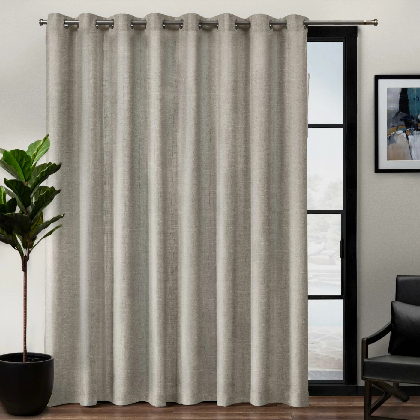 Add the finishing touch to your outdoor dΓ©cor with the Exclusive Home Loha Patio Grommet Top Curtain Panel. This single panel is designed to be wide enough to cover your patio doors. Matte silver grommets give this sheer linen-look patio curtain panel a contemporary drape. Choose from the available color options.