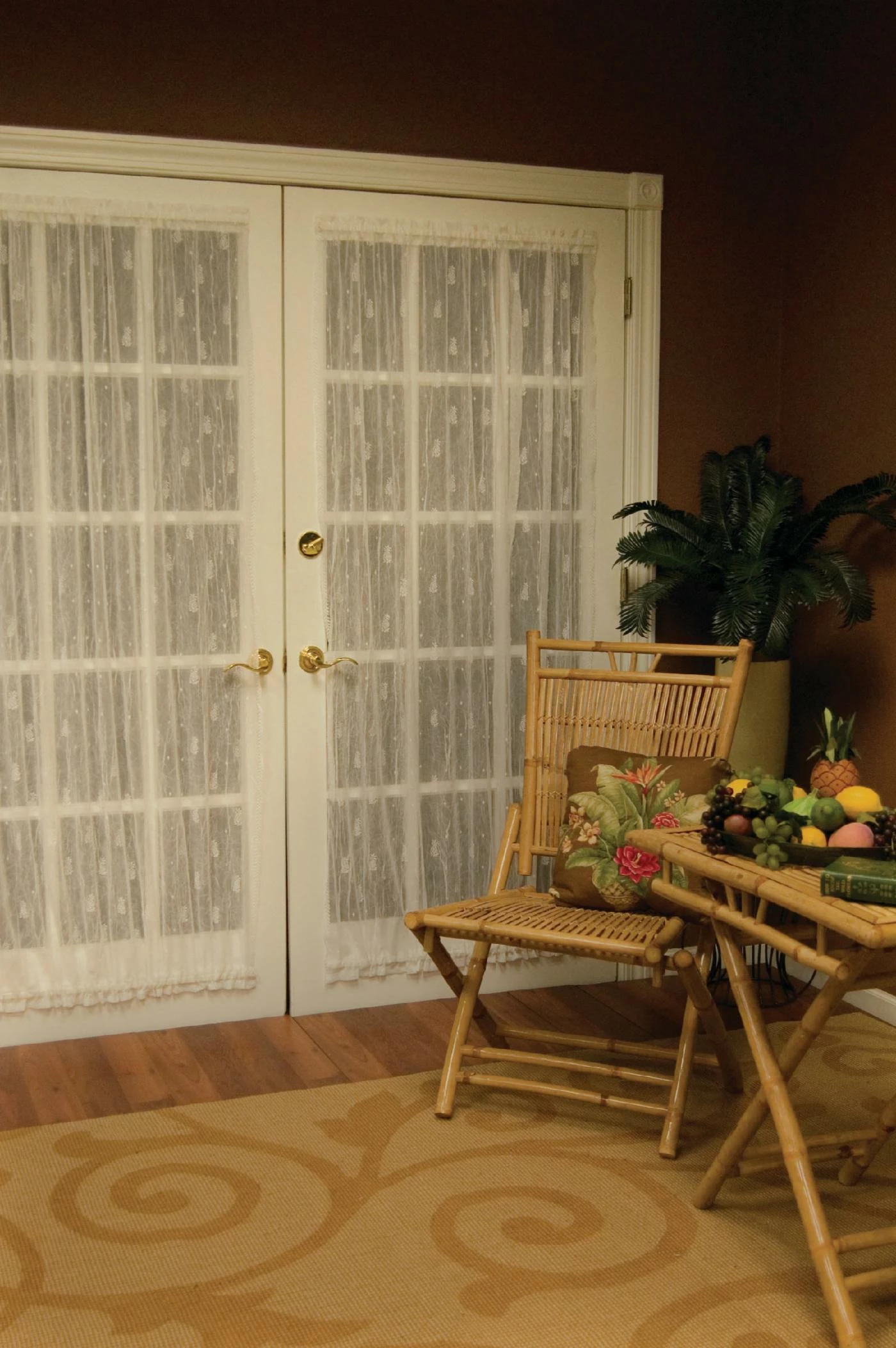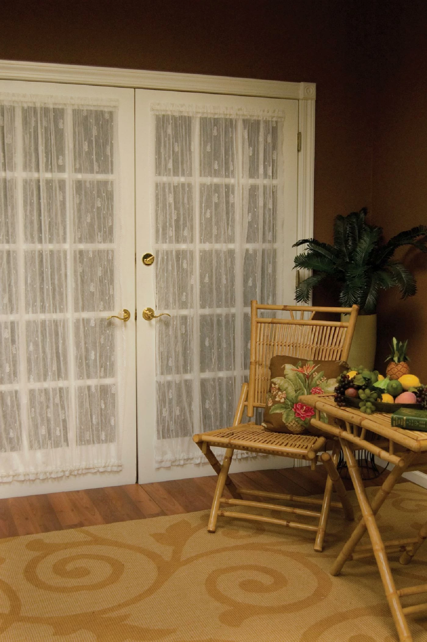 Adorn your front door with the Heritage Lace Pineapple Door Curtain Panel for a touch of tropical elegance. This polyester lace curtain panel features a delicate print of pineapples and polka dots. The sheer netting structure filters sunlight softly for a gentle glow. This curtain panel is offered in multiple size and color options.
